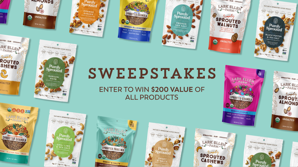 Win all your favorite sprouted snacks from Lark Ellen Farm and our sister brand Purely Sprouted — a $200+ value of pure, sprouted goodness.