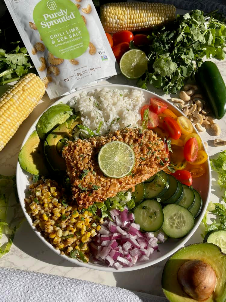 Sprouted cashews, lime sea salt (sea salt, lime powder), sea salt, less than 2% of: organic agave, crushed red pepper flakes, sunflower oil, lime oil, rosemary extract